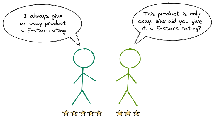 Thus, the new ratings of users 1 and 2 for product 1 after adjusting for biases will be 2 stars and 1 star respectively.